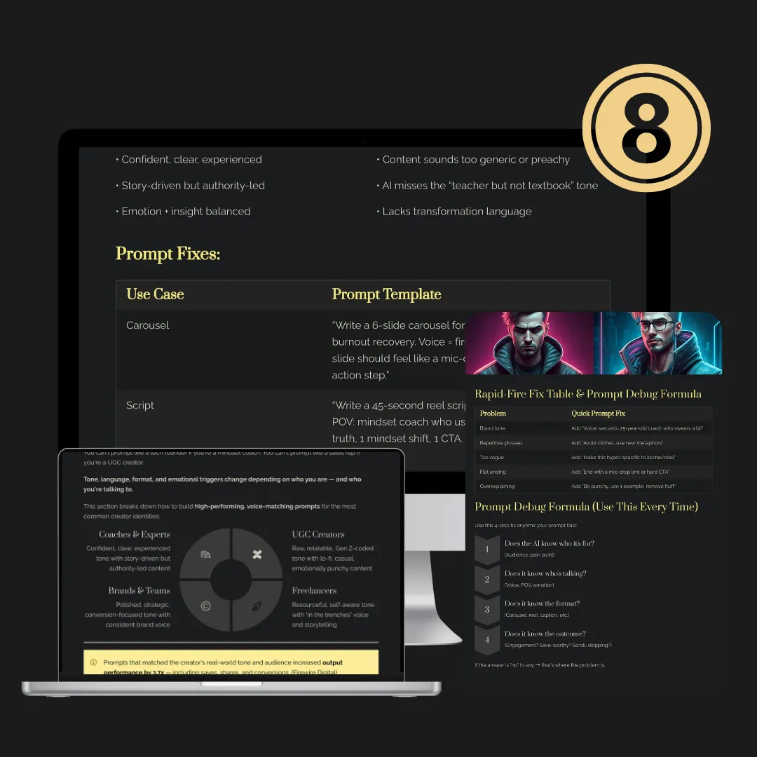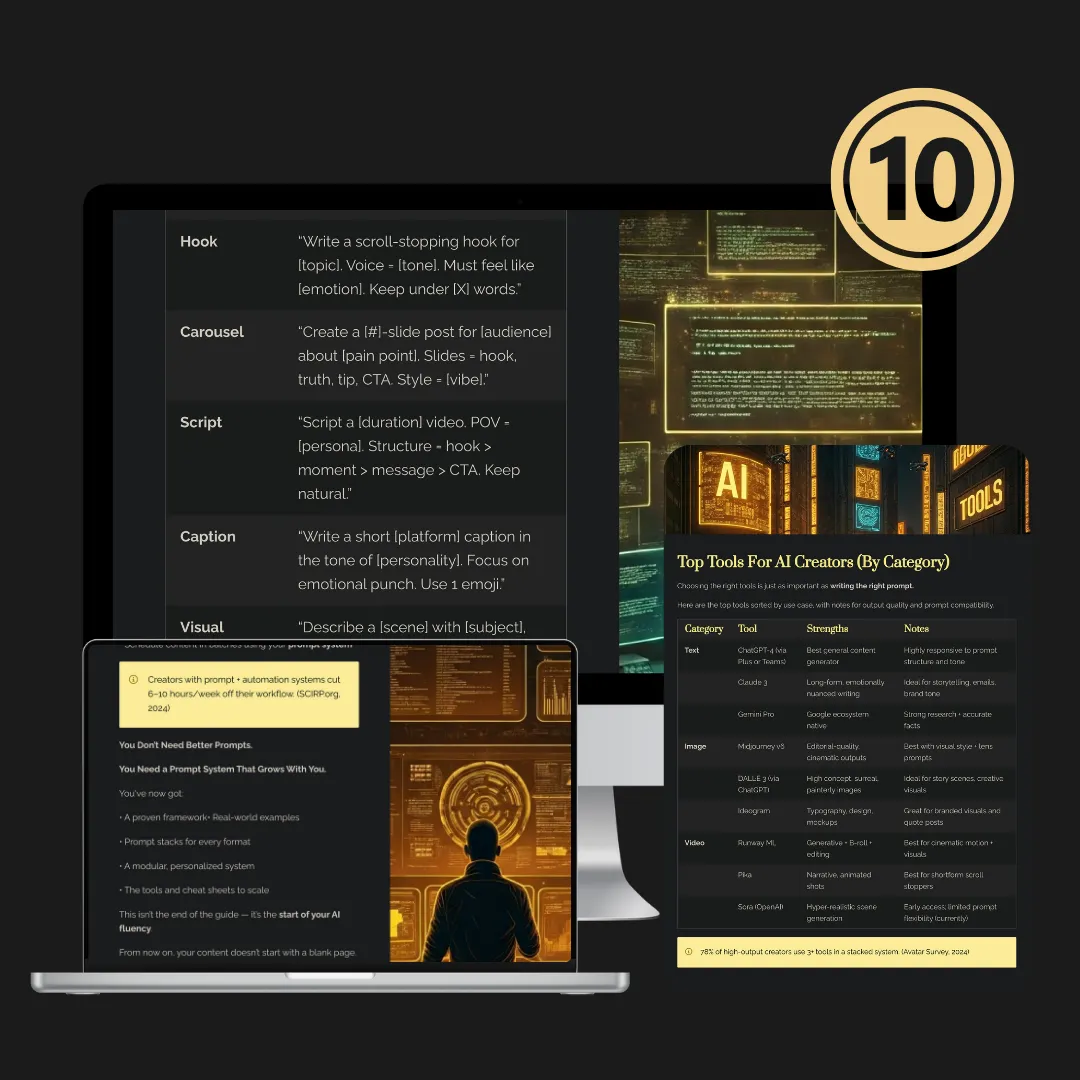 Unlock a curated vault of proven prompts to create standout content, grow your brand, and boost income.