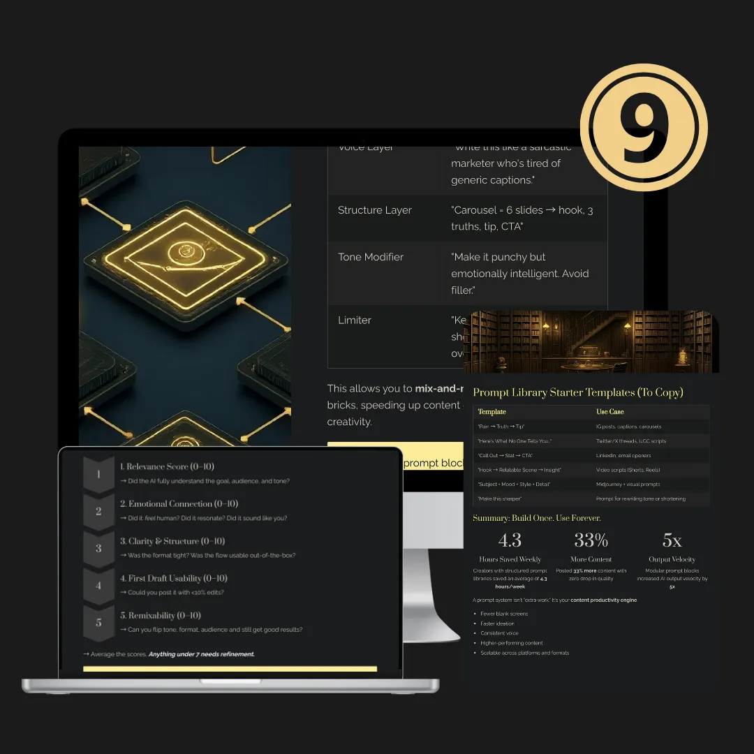 Bonus tools to boost your AI results. Get prompt templates, swipe files, and real examples to speed up your workflow and create sharper content. These resources give you a creative edge from day one.