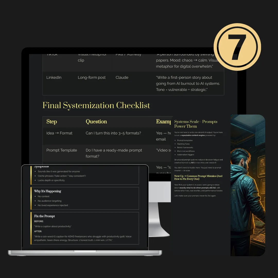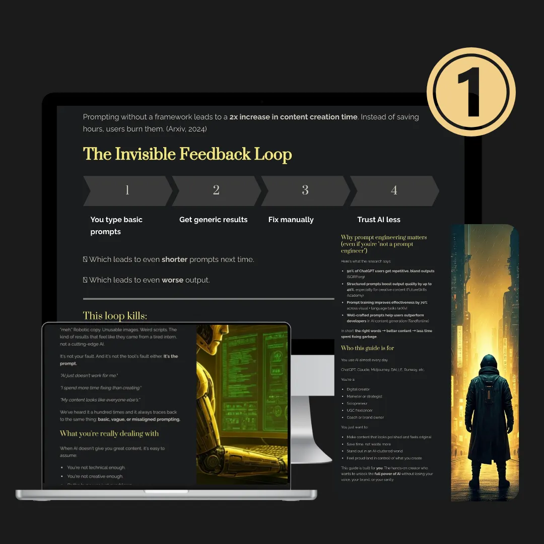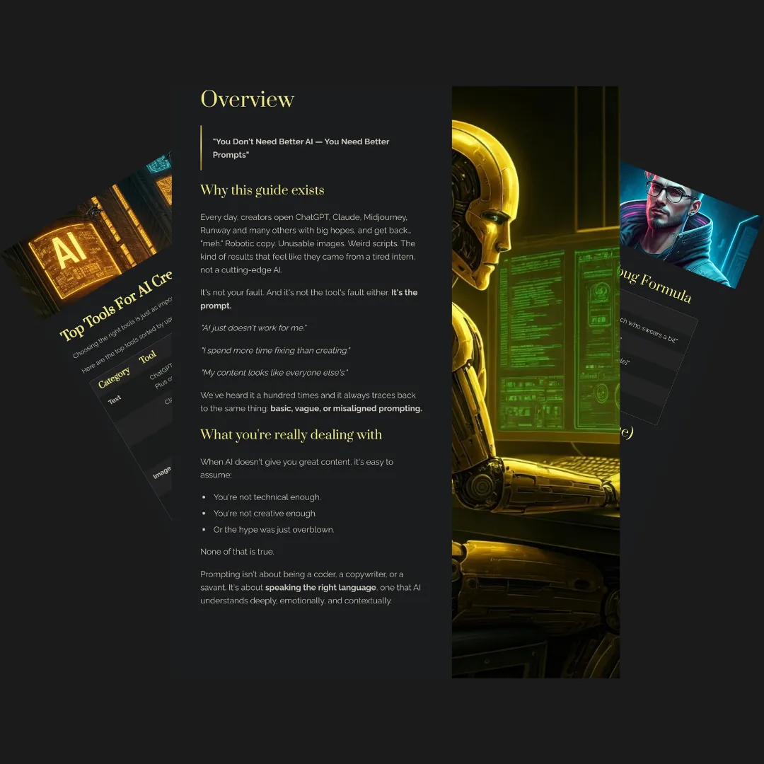 Absolutely. If you're already using ChatGPT, Claude, Midjourney, or other AI tools, this guide shows you why your current results may only scratch the surface. Inside, you'll find frameworks and templates that help you go from "good enough" to standout, with faster, clearer, more creative outputs. Whether you're writing, designing, or scripting, this system upgrades what you're already doing, without adding complexity.