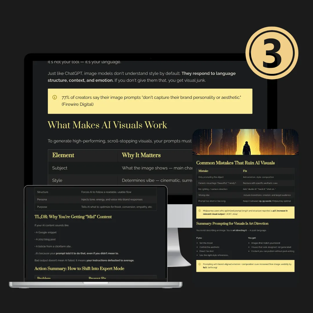 This guide teaches you how to get more useful, original, and higher-quality results from AI tools, just by improving the way you prompt. Inside, you'll learn the real reason most people get dull, repetitive content from AI. Then, we walk you through a step-by-step system to fix it, with frameworks, formulas, and swipeable examples designed to work across text, image, and video generation.